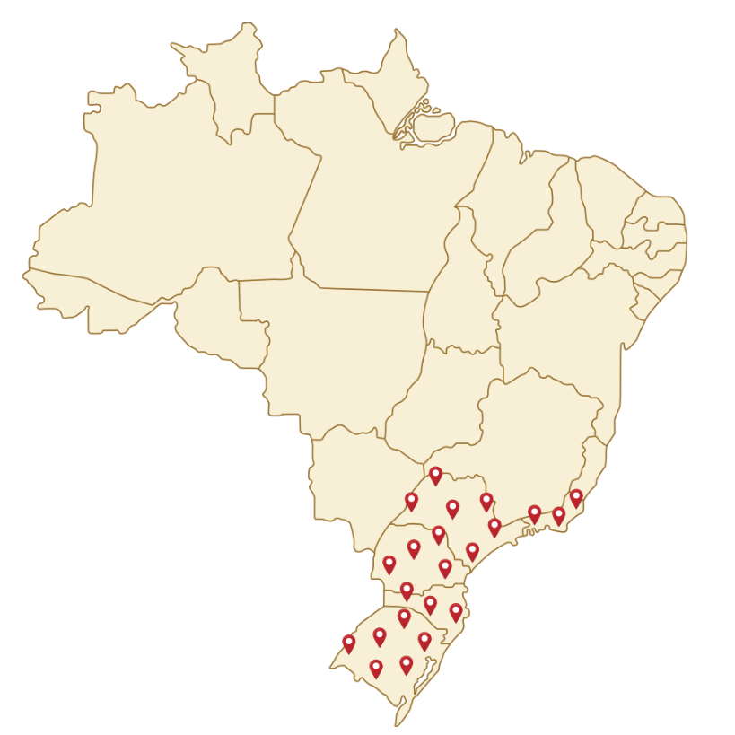 Nossas marcas estão presentes em diversos mercados do Brasil, entregando qualidade e sabor ao seu negócio. Você encontra nossos produtos em estados como Rio de Janeiro, São Paulo, Paraná, Santa Catarina e, especialmente, no Rio Grande do Sul.